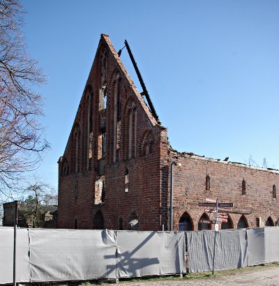Wie die Stadtverwaltung Fürstenberg bekanntgab, hat das Landgericht Neuruppin eine Stellungnahme abgegeben. Es geht um das Zivilverfahren der Stadt gegen die beiden Haupteigentümer des Brauhauses (die Medienberichten nach je ein Drittel halten). Die Stadt hat sie verklagt, den Nordgiebel der Brandruine zu sichern, um den Kirchweg, der seit dem Brand 2010 gesperrt ist, wieder freigeben zu können. Nun hat das LG Neuruppin die Klage zugelassen und ein Gutachten zur Standfestigkeit des Giebels angefordert. Die Stadt schätzt die Äußerung des Gerichts als ermutigendes Zeichen ein und hofft auf eine Entscheidung noch in diesem Jahr (!).